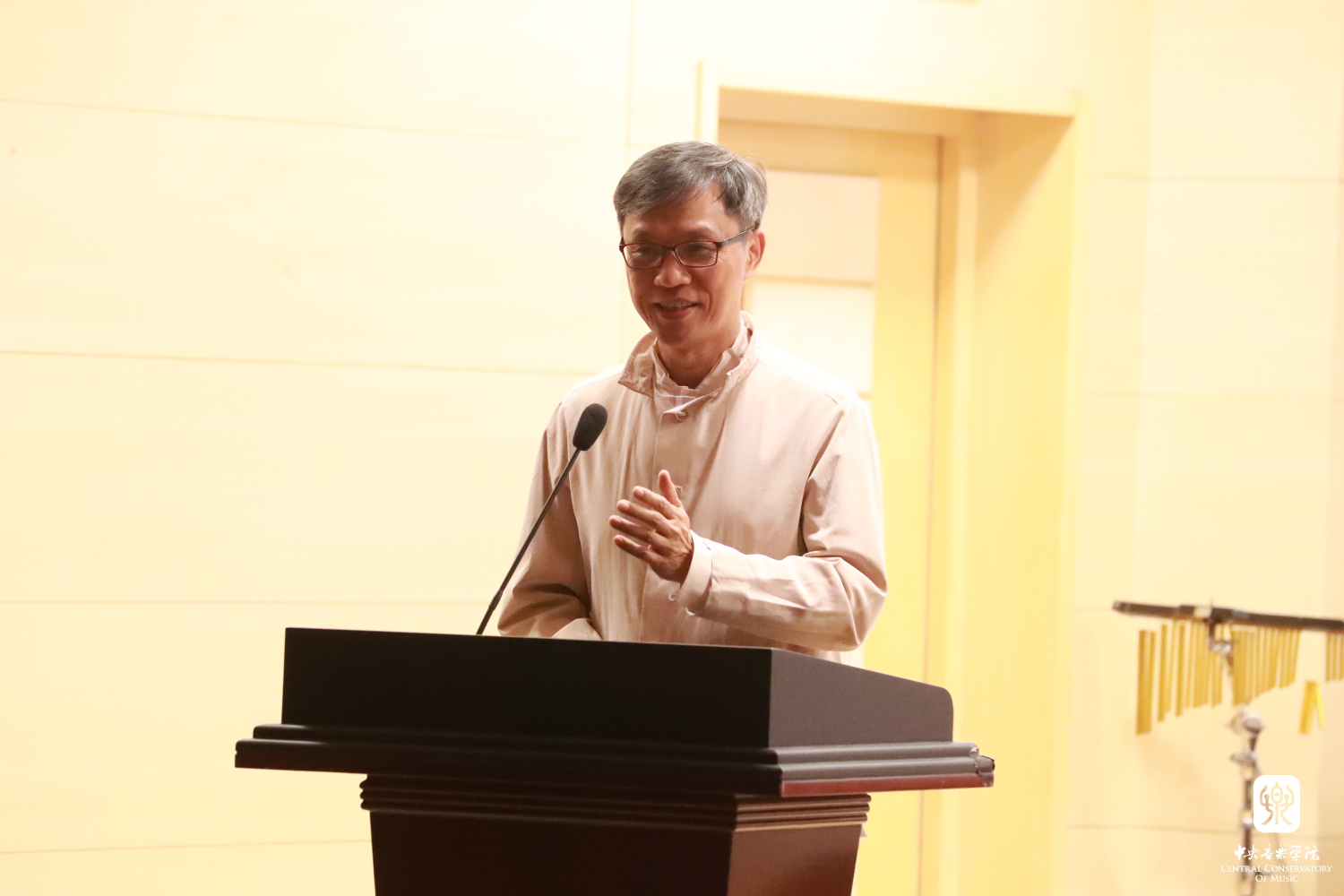 赵旻书记首先代表学院对台南艺术大学师生的到来表示欢迎。他在致辞中说,习近平总书记在《告台湾同胞书》发表40周年纪念会上的讲话中强调,“国家的希望、民族的未来在青年。两岸青年要勇担重任、团结友爱、携手打拼”。希望两岸青年珍惜韶华,努力拼搏,把个人梦想融入祖国富强和民族复兴的伟大事业,共担时代使命。希望两校学生以音乐为桥,做弘扬中华优秀传统文化、传承中国民族音乐的践行者,共同努力实现中华民族伟大复兴。