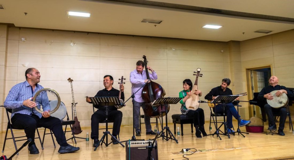 音乐会由乌兹别克斯坦的传统音乐开场。年轻的乌兹别克斯坦弹布尔、萨塔尔演奏家伊山霍贾耶夫·乌米徳(UimdJiyn Hofiz)用拉弦乐器格加克(ghijjak)奏出悠扬的曲调,充满浪漫气息。伴随着乌兹别克斯坦中亚演奏家阿巴斯·库斯莫夫(Abbos Kosimov)的手鼓演奏,音乐加快了速度,并变得欢快起来,带领观众感受热情又不失细腻的异域风情。随后,二位演奏家介绍了乌兹别克斯坦的音乐与乐器。手鼓朵以拉(doyra),在哈萨克斯坦、吉尔吉斯斯坦、巴基斯坦等国以及我国新疆地区都有广泛运用。响板qayloq由一块石板、一块金属板组成,能够根据不同的击奏方式产生不同的音色。为了进一步展示本民族音乐的特点,叔侄二人还为大家带来了一首由弹布尔、朵以拉与qayloq伴奏的弹唱歌曲。