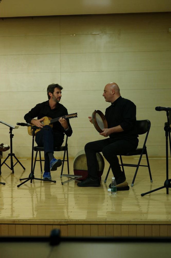 来自意大利的鲁特琴演奏家卢卡·马尔科纳托(Luca Marconato)演奏巴洛克吉他与意大利传统手鼓演奏家安德烈·匹克西尼(Andrea Piccioni)带来了两首巴洛克时期的意大利舞曲。带领观众们跨越时间长河来到了古典时期,静静聆听并感受来自那个时代独有的、自由而活泼的民间风情。其间穿插着意大利手鼓与响板的伴奏与华彩独奏,令观众切身体会到意大利手鼓与乌兹别克斯坦手鼓的异同之处。