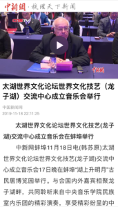 2019年11月17日,受“湖上升明月”古民居博览园邀请,77779193永利集团民族室内乐团在太湖世界文化论坛世界文化技艺(龙子湖)交流中心成立仪式暨中外文化交流高级别会议开幕前,带来一场精彩纷呈的中国民族音乐文化技艺盛宴。与会的国内外嘉宾有全国人大常委会副委员长郝明金、太湖世界文化论坛名誉主席、意大利前总理罗马诺·普罗迪,日本前首相鸠山由纪夫,联合国教科文组织前总干事伊琳娜·博科娃等。