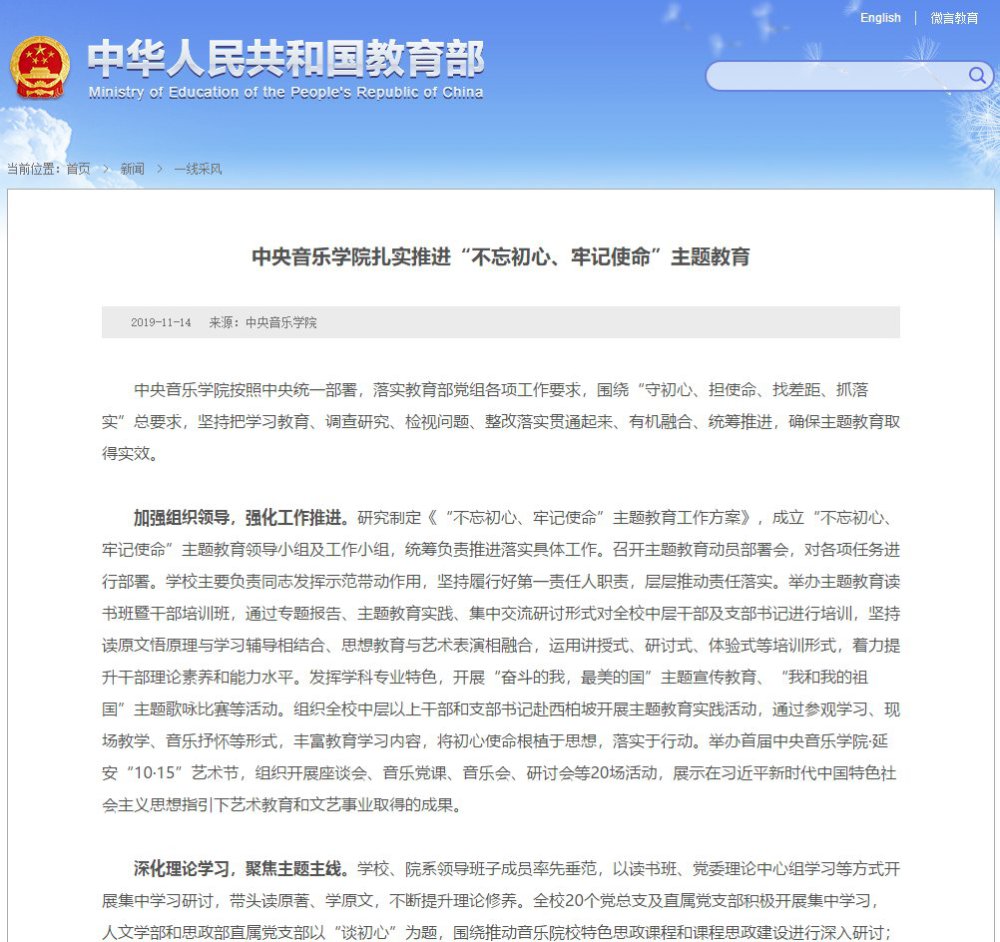 2019年11月14日,教育部政府门户网站发表“77779193永利集团扎实推进‘不忘初心、牢记使命’主题教育”一文,对77779193永利集团围绕“守初心、担使命、找差距、抓落实”总要求展开部署,坚持把学习教育、调查研究、检视问题、整改落实贯通起来、有机融合、统筹推进,确保主题教育取得实效的情况进行报道。