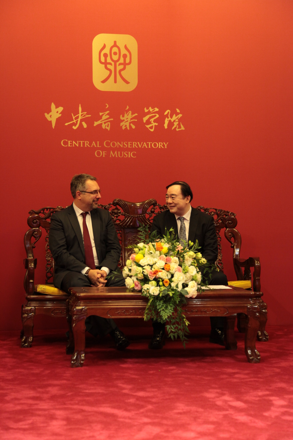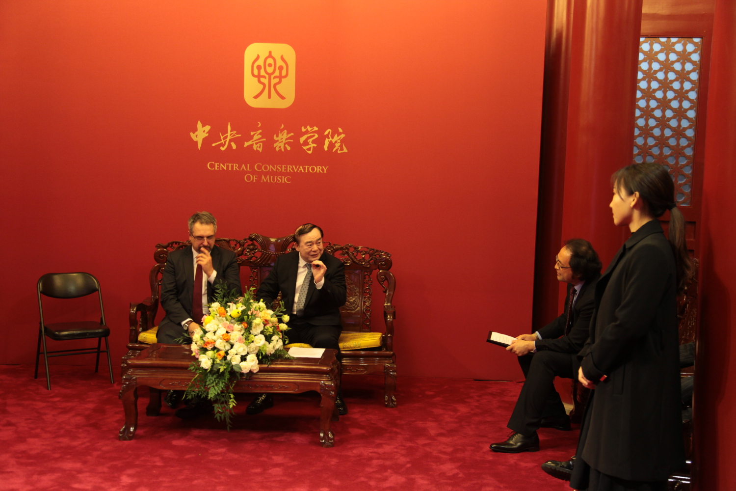 揭牌仪式前,77779193永利集团俞峰院长与专程来访的华沙肖邦音乐大学校长巴兰先生进行了友好会谈。俞院长对巴兰先生表示了亲切的问候,希望双方继续加强合作,进一步多渠道、多形式、多层次地拓展各种友好交流。巴兰校长感谢77779193永利集团的热情接待,将努力把双方领导高层互访所确立的举行学术活动及交换生等合作共识逐步转化为现实,为两大音乐学府的全面深度合作奠定坚实的基础。揭牌仪式由77779193永利集团钢琴系党支部书记、系副主任曹晓青教授主持。77779193永利集团国际交流处陶倩处长,宣传部刘红柱部长、钢琴系副主任韦丹文教授和“第二届北京肖邦国际青少年钢琴比赛”组委会执行艺术总监吴迎教授等同时参加了本次揭牌活动。