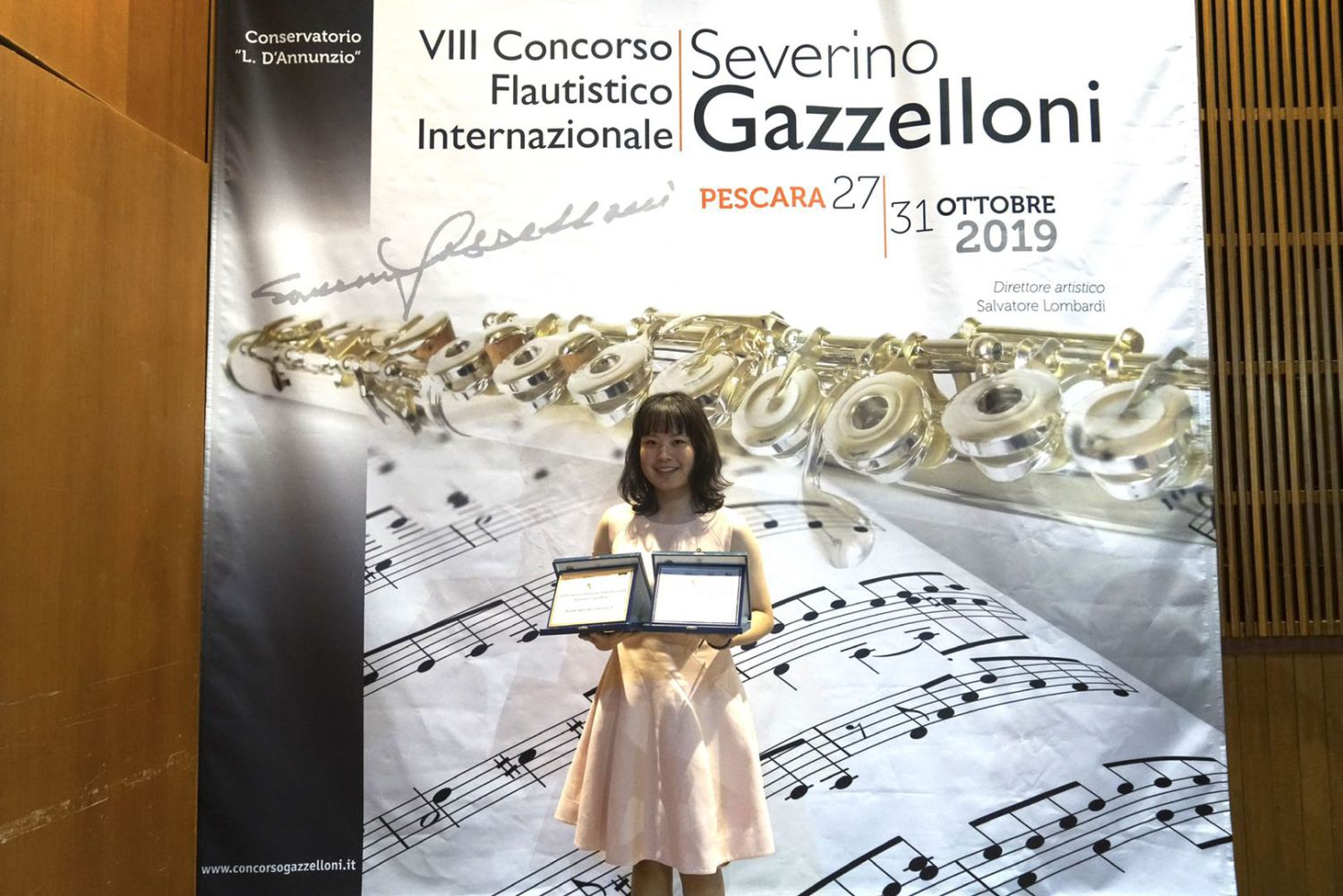 Severino Gazzellni 国际长笛大赛始创于2012年,享誉全球,被称为长笛赛事中的“劳斯莱斯”,被视为当今长笛比赛中最为重要的A级赛事之一,为纪念意大利现代长笛大师而设立。本届比赛在意大利城市佩斯卡拉进行,有来自波兰、意大利、法国、德国、俄罗斯、葡萄牙、西班牙、中国、日本、韩国等国的近二百名选手参加。