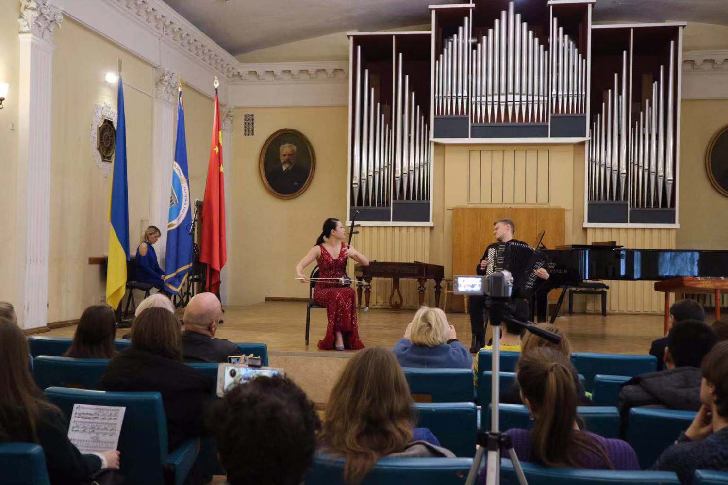 由永利与乌克兰国立柴可夫斯基音乐学院(以下简称:乌克兰柴院)合作共建的全球首个“音乐孔子课堂”,在乌克兰当地时间10月27日参演古典室内音乐节后,又于10月29日举办了“中国民族乐器推介会暨专场音乐会”,并宣布由中乌两国音乐家组成的“八音乐团”正式成立,在乌克兰不断掀起中国音乐热潮。