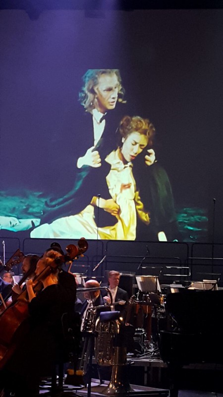 庆典音乐会中,迪里拜尔演唱咏叹调《四周被寂寞笼罩》时,大屏幕中播放着当年由迪里拜尔主演的《拉美莫尔的露琪亚》与法国著名男高音歌唱家福尔朗的剧照。