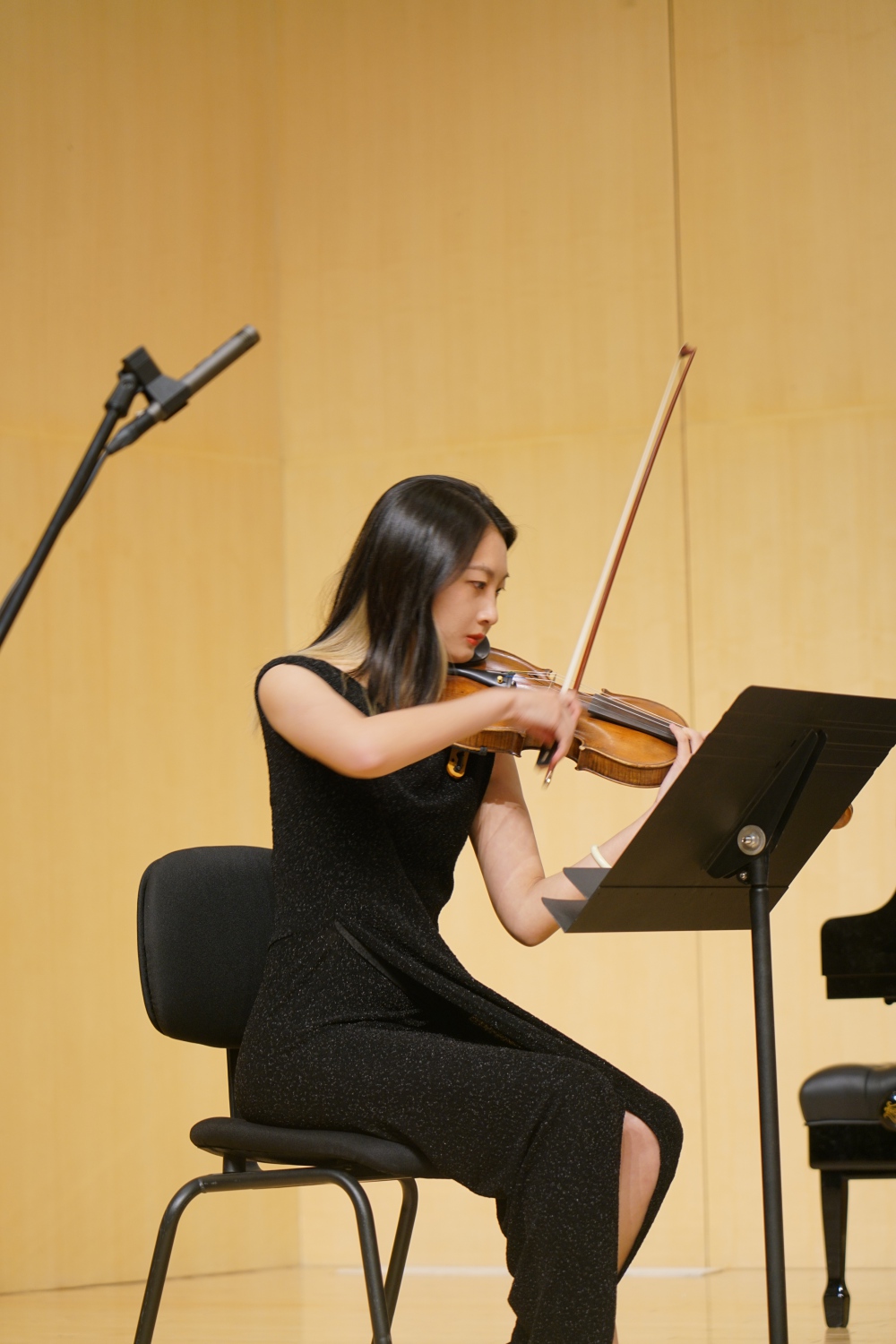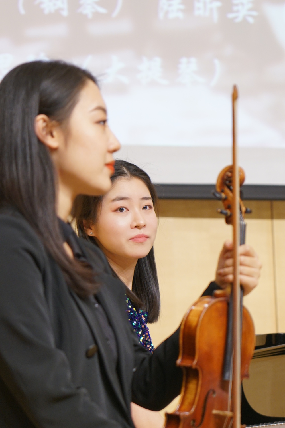 本场演出的第二首作品,是贝多芬于1808年创作的《A大调第三大提琴奏鸣曲》(Op.69),由管弦系博二学生邱树豪、研三学生沈一鸣共同演奏第一乐章。大提琴奏鸣曲是贝多芬创作中期阶段最能体现其创作多元性的一整套作品,而该作因仍存有手稿原谱而尤为珍贵。刘小龙老师提到:“贝多芬在大提琴奏鸣曲的创作过程中,将钢琴与大提琴声部轮流不断地进行改动,最后几乎形成了像两个版本一样的谱面。作为钢琴家,贝多芬对于钢琴有着自己的想法,他努力地寻找大提琴与钢琴的功能平衡关系,希望通过周密的安排,找到两种乐器间类型与声音控制上的关联。这也是贝多芬在历经九部小提琴奏鸣曲的写作后,对小型重奏题材一个极大的开拓。”
