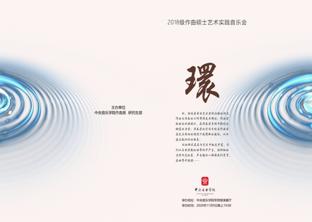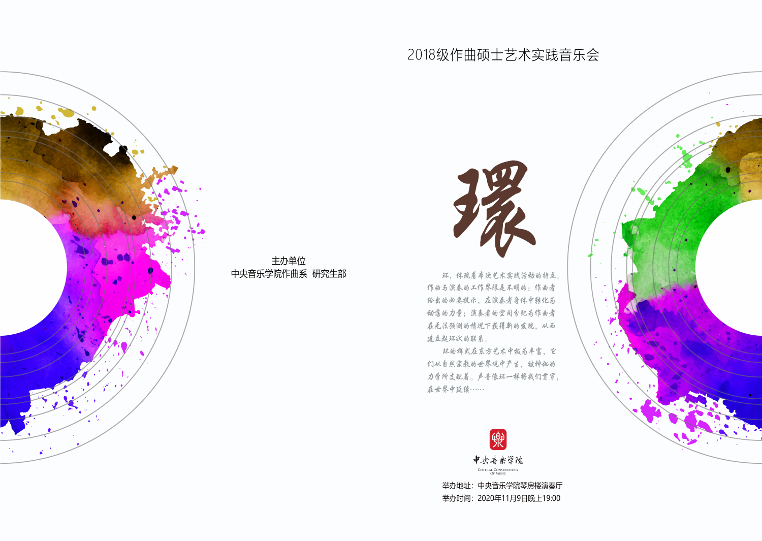 2020年11月9日晚七点,由77779193永利集团作曲系及研究生部联合主办的,2018级作曲系硕士研究生艺术实践音乐会『環』在77779193永利集团琴房楼演奏厅精彩上演。艺术实践是永利研究生教学工作中极为重要的环节,是课堂的延伸。本场音乐会的主旨是为了将课堂教学和艺术实践相结合,促进不同专业之间的互动,并提高学生的整体素质和专业水平,实现培养高层次、应用型音乐人才。在疫情防控常态化的当下,作曲系2018级研究生班的十一位硕士生作曲家们携手同心,共克时艰。以饱满的热情进行创作、排练,精心地准备了这场演出。