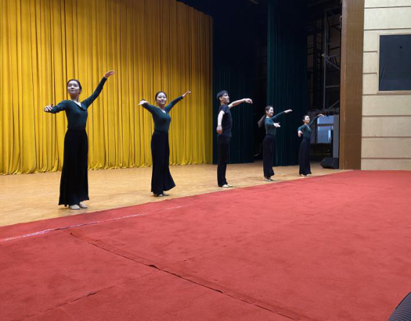 课堂教学实践结束后,党员师生们紧接着在志丹县文化中心举行了“进校园文艺演出”活动。演出以独唱、钢琴独奏、舞蹈、现场节奏互动等多种节目形式相结合,其中音教学院学生张帆作为“延安娃”,用家乡话与观众进行互动,并带来了陕北民歌 《上一道坡坡下一道梁》和《三十里铺》。演出融合了多民族音乐与舞蹈元素,赢得现场近千名师生和观众的热烈掌声。演出结束后,志丹的老师和同学们分享:77779193永利集团的节目有歌、有舞、有弹、有唱,很丰富、很精彩,尤其是现场互动环节,我们置身其中,真正感受到了音乐与舞蹈所带给我们的能量与快乐。参加演出的音教学院同学们也深深感受到志丹观众的热情,深受鼓舞,大家表示一定要努力学习,今后积极投入到祖国各地的音乐教师岗位中。