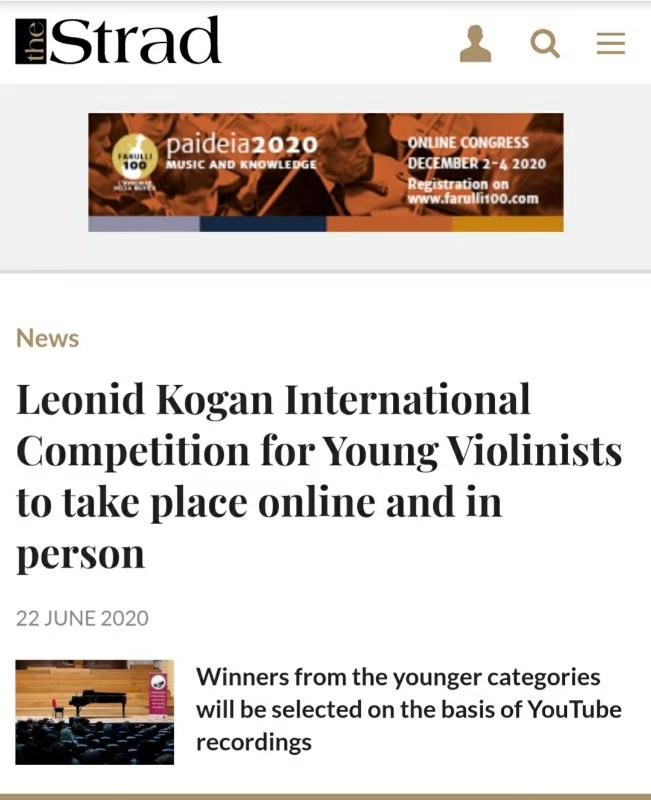 柯岗小提琴比赛在国际领域受到广泛关注,虽然国际疫情形势严峻,2020年第4届柯岗比赛仍然得到世界各地的宣传和报道,被音乐组织和媒体资讯的关注,例如The Violin Channel小提琴频道(180多个国家订阅),Strad官方,db Strings,Russkiy Mir foundation,Tonic chord,Slipped Disc.