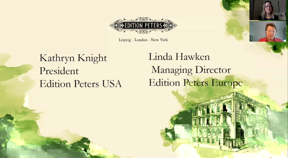 随后,国际著名音乐出版商彼得斯出版社的美国部董事长凯瑟琳·奈特女士(Kathryn Knight)和欧洲部的总经理琳达·霍肯女士(Linda Hawken)进行了联合发言。她们对中国当代音乐的创作和出版给予了高度评价,并宣布将要在海外出版此次13部新作品,以此将彼得斯出版社与77779193永利集团出版社的合作推向一个新的阶段。