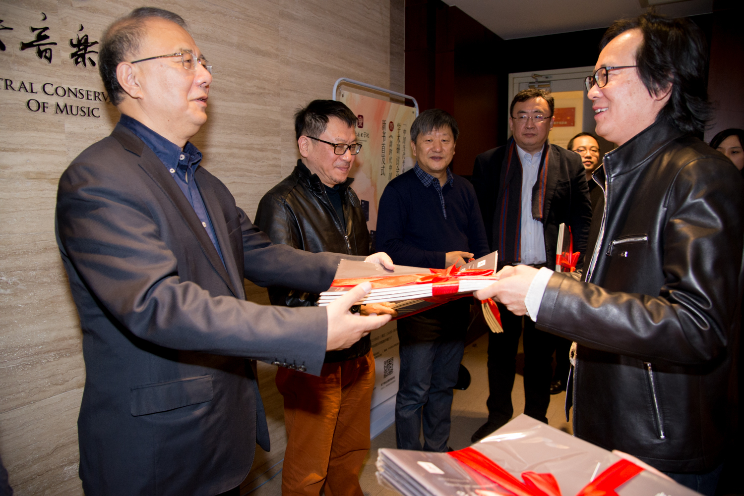 随后,秦文琛副院长和张伯瑜教授为现场的作曲家们赠送了《新时代中国原创音乐作品》的乐谱,并合影留念。