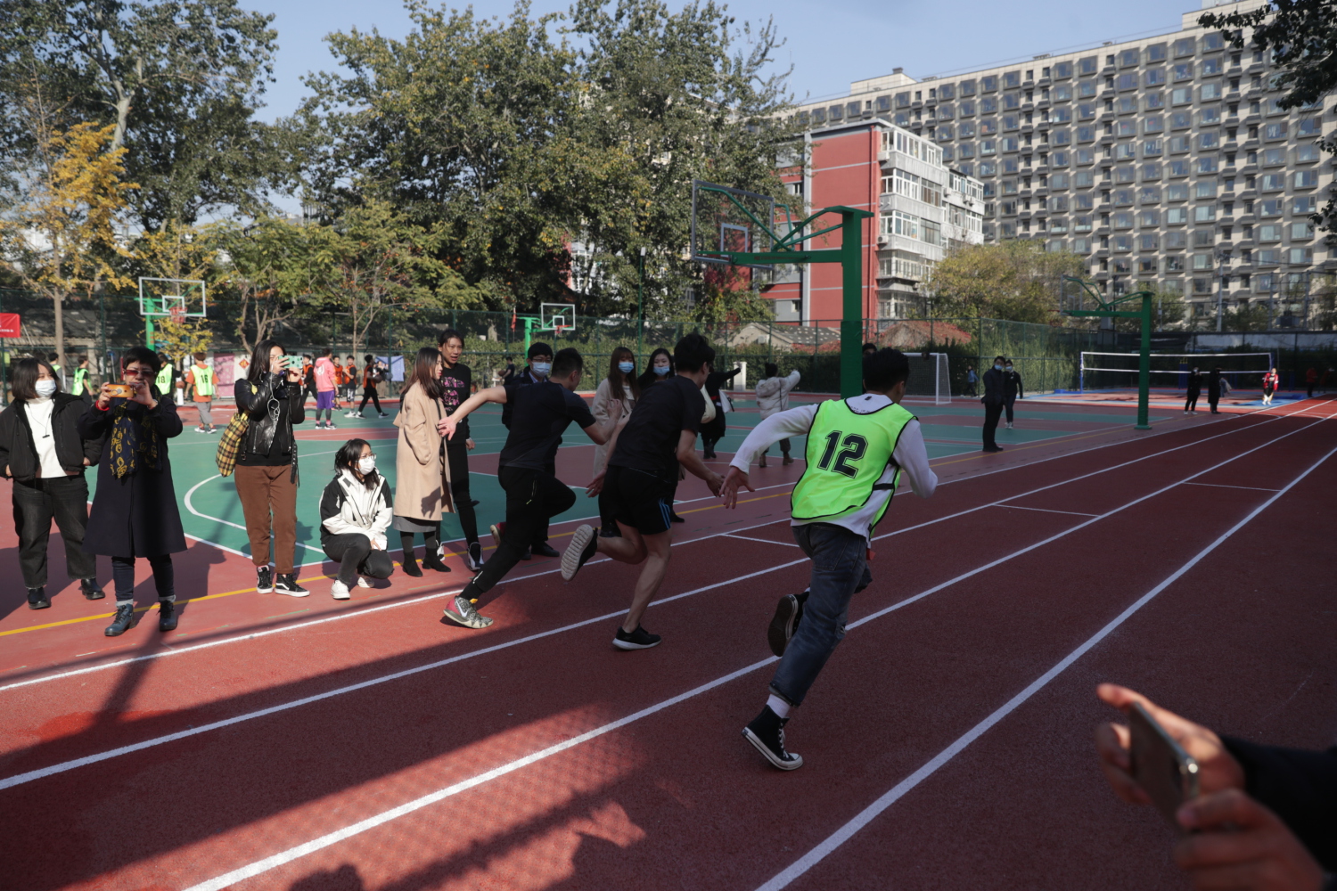 背打、转身、强突到篮下、闪开防守队员,举手抛投——准确命中!一气呵成的专业范儿动作激起观众一片叫好之声!这是运动场启用仪式中的重头戏:男子篮球表演赛的一个镜头。尽管只是表演赛,由永利学生组成的黄、绿两队却毫不懈怠,打得难解难分。奋力拼抢,敢于争胜,激情四射,气势如虹!壮哉,央音男儿!
