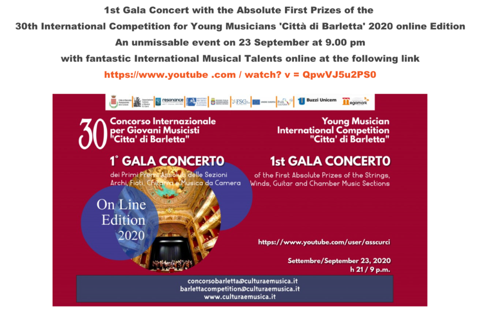 意大利巴列塔之城国际音乐家比赛历史悠久,评审团阵容强大。(Concorso Città di Barlett)此次第30届比赛,来自世界各地的注册人数超过320人,取得了巨大成功。