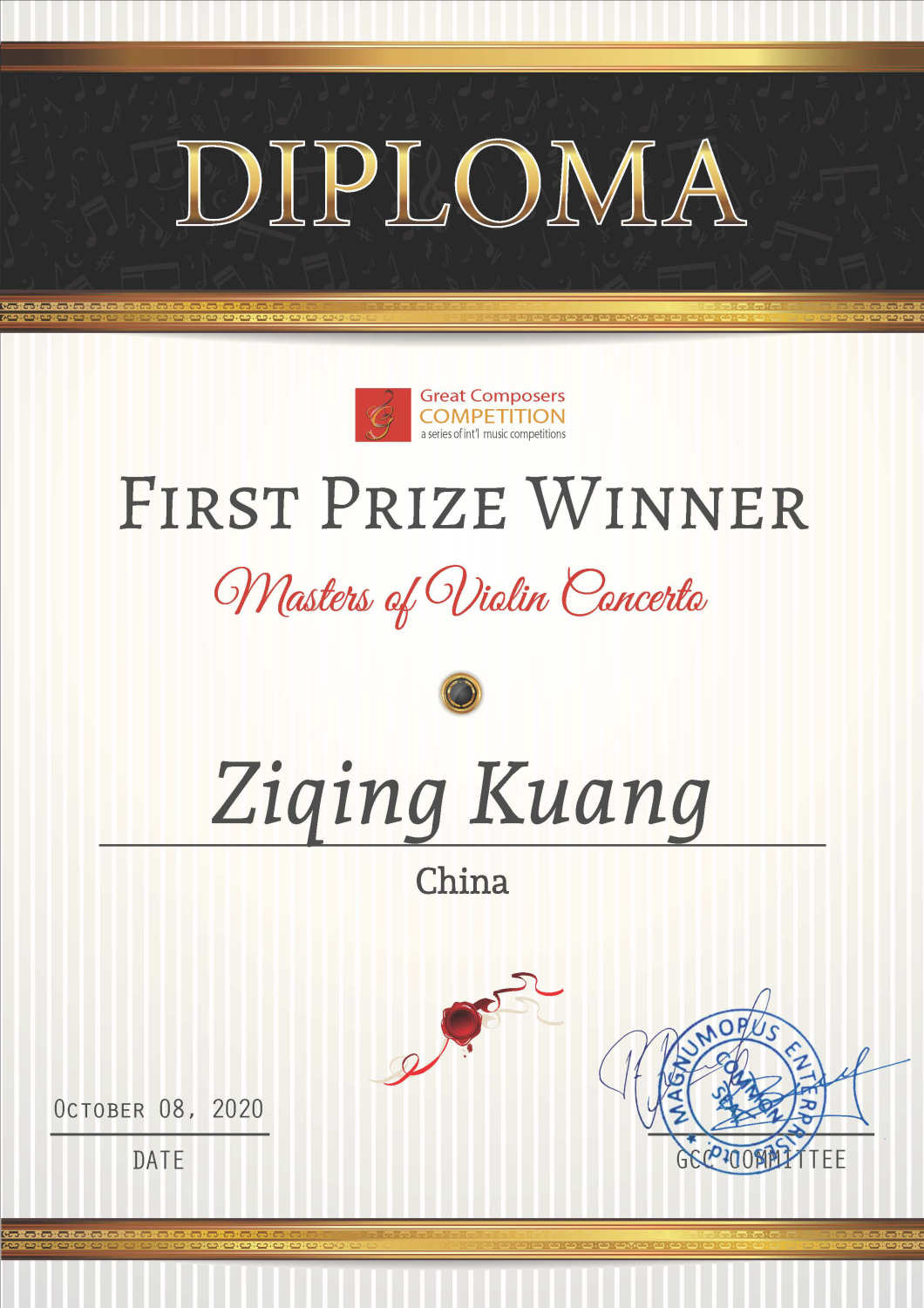 管弦系小提琴专业邝子晴荣获英国伟大音乐家比赛国际音乐比赛系列赛-协奏曲大师赛第五组一等奖