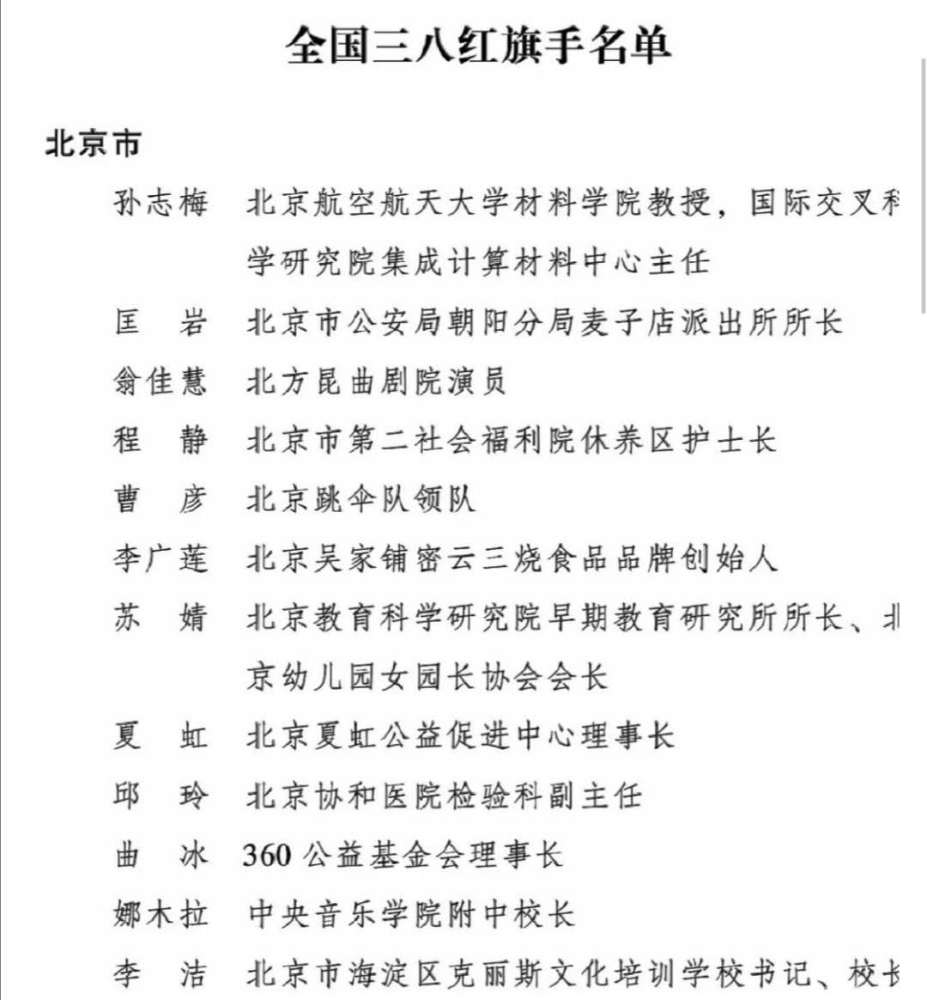 10月24日,全国妇联公布300名获得2019年度全国三八红旗手荣誉称号的人员名单,其中北京市有12名女性上榜,永利附中校长娜木拉教授获此殊荣。