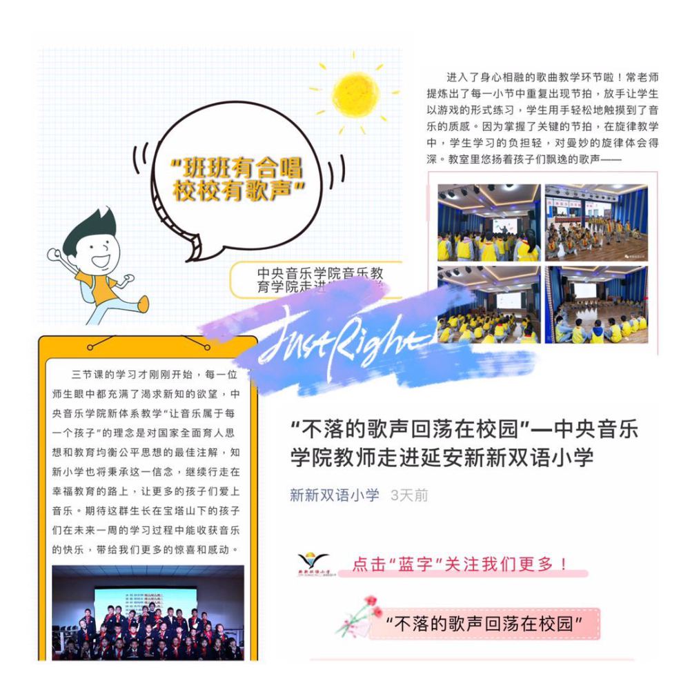 此外,还为中小学的合唱团挑选了《南泥湾》《少年少年祖国的春天》《歌声与微笑》《国家》《让世界充满爱》《明天会更好》等10多首优秀合唱作品作为教学内容。整个音乐教学活动以体验式歌唱教学法为指导,用音乐的真善美体验,激发并感化老区孩子对他们祖辈的敬仰和对祖国及家乡的热爱,激励“延安娃”们继承发扬延安精神,建设美好家园。