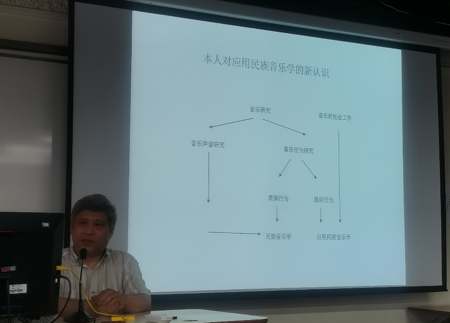 同时,张老师对应用民族音乐学进行了解读,提出自己的认识。他认为音乐研究分为音乐声音研究和音乐行为研究,音乐行为研究又分为表演行为和组织行为。表演行为属于民族音乐学范畴,是以学术为目的的研究,而组织行为和从事音乐社会工作都属于应用民族音乐学范畴,是以实践为目的的研究。应用民族音乐学的研究范围很广阔,社会价值很鲜明。