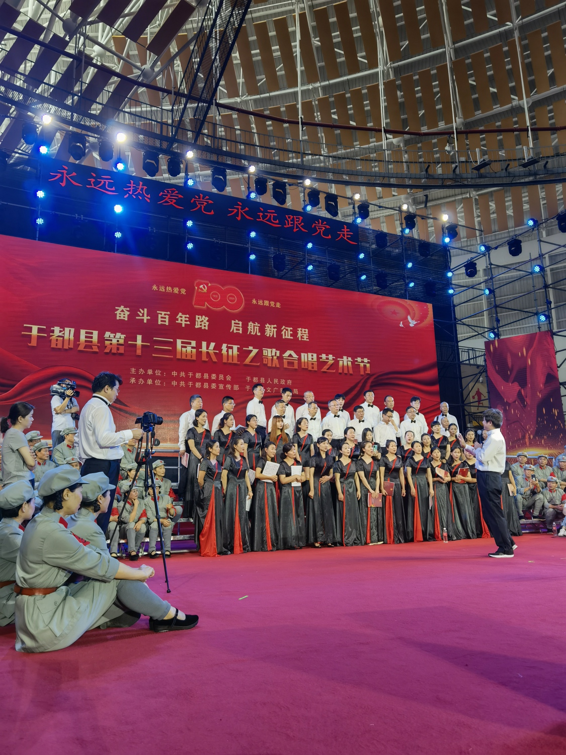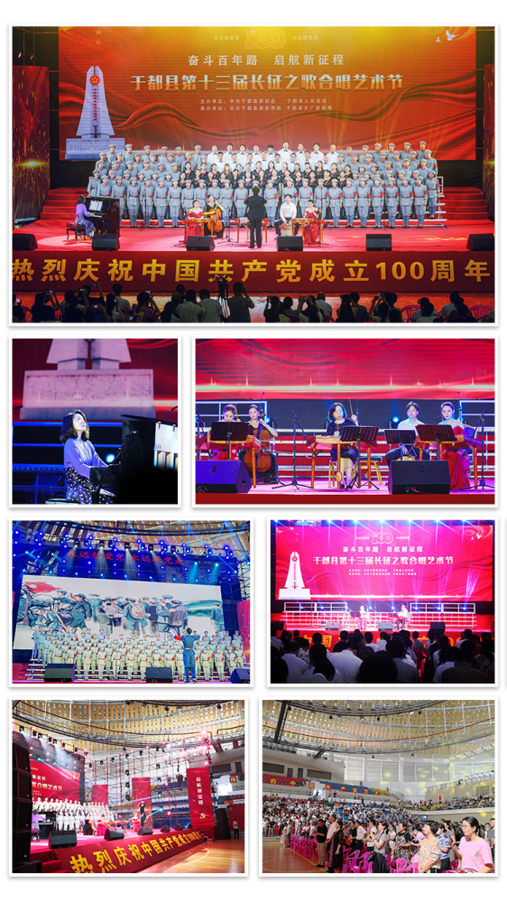 26日上午,永利演奏家小组与长征源合唱团联袂“第十三届长征之歌合唱艺术节”开幕式音乐会,曲目包括:刘月宁主任特别为于都之行创作的《映山红随想》(首演)、钢琴独奏《彩云追月》、扬琴二重奏《唱支山歌给党听》等,压轴曲目为由杨力教授指挥,演奏家小组与长征源合唱团、赣州市文联佬俵哥合唱团共同高歌的《歌唱祖国》,全场1000余名观众自发加入合唱并起立欢呼,场面振奋人心!
