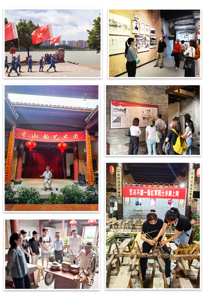 在两天的时间里,永利参访团一行除演出、讲座和座谈外,还进行了内容丰富的党史学习和参访活动:沿着2019年习近平总书记在于都的考察路线,参观了中央红军长征出发纪念馆,在长征出发纪念碑前敬献花篮;走访梓山镇潭头村,听孙观发老人讲述他与总书记交谈的生动细节;参访赣南省苏维埃政府旧址暨长征前夕毛泽东同志故居,了解长征策划酝酿到集结出发的全过程;在于都县非物质文化遗产传习所聆听“客家古文”、“江西杖头木偶戏”等传统曲艺表演,为进一步发掘江西丰富的地方音乐资源打下基础。