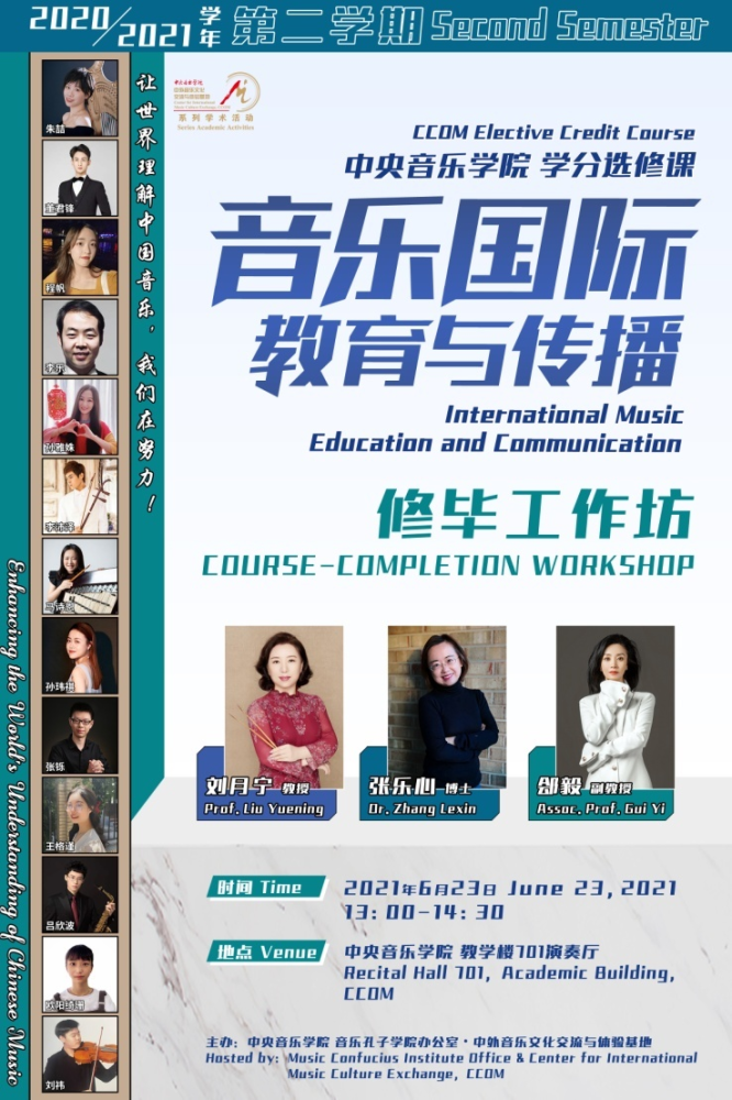 《音乐国际教育与传播》是自2016年起,“中外音乐文化交流与体验基地”在永利开设的一门本、硕联合选修课,包含:跨文化交流基础理论、外语、音乐传播历史与现状、当代传播案例分享等多学科内容,旨在培养具备国际教育与传播能力的艺术专业学生,以满足在当前全球性文化交流空前深入的大背景下,对国际化、复合型音乐人才的需求。开设至今,课程已分别面向北京大学燕京学堂、北京航空航天大学国际学院以及中国石油大学国际教育学院留学生们举办了4场修毕工作坊活动(2020年为线上形式),取得良好效果。2021年由刘月宁教授、张乐心博士、郐毅副教授联合主讲,并邀请多位在国际音乐教育与传播领域专家以及往届外派教师和志愿者代表分享他们鲜活的海外传播实例,在课堂与同学们产生了强烈共鸣。