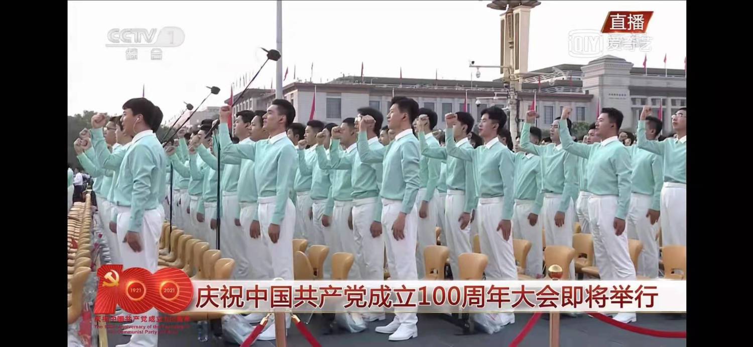 伴随着《国际歌》的尾声,我们已然跟随着总书记与全国人民一同见证了这一历史性时刻——从1921年嘉兴南湖的小船到2021年拥有了9500多万党员,成为世界第一执政大党的中国共产党,正在阔步走向下一个一百年的新纪元。我们作为总书记寄予厚望的新时代青年,也深深感受到了作为国家未来的使命感。我们应当在中华民族伟大复兴这一目标中倾尽自己的绵薄之力!将老一辈革命家用青春与热血换来的来之不易的幸福延续下去,让我们作为傲立于世界的共产主义灯塔永远照亮东方!