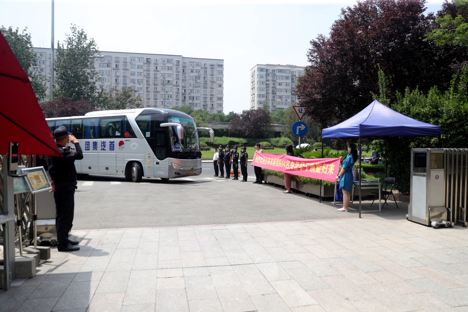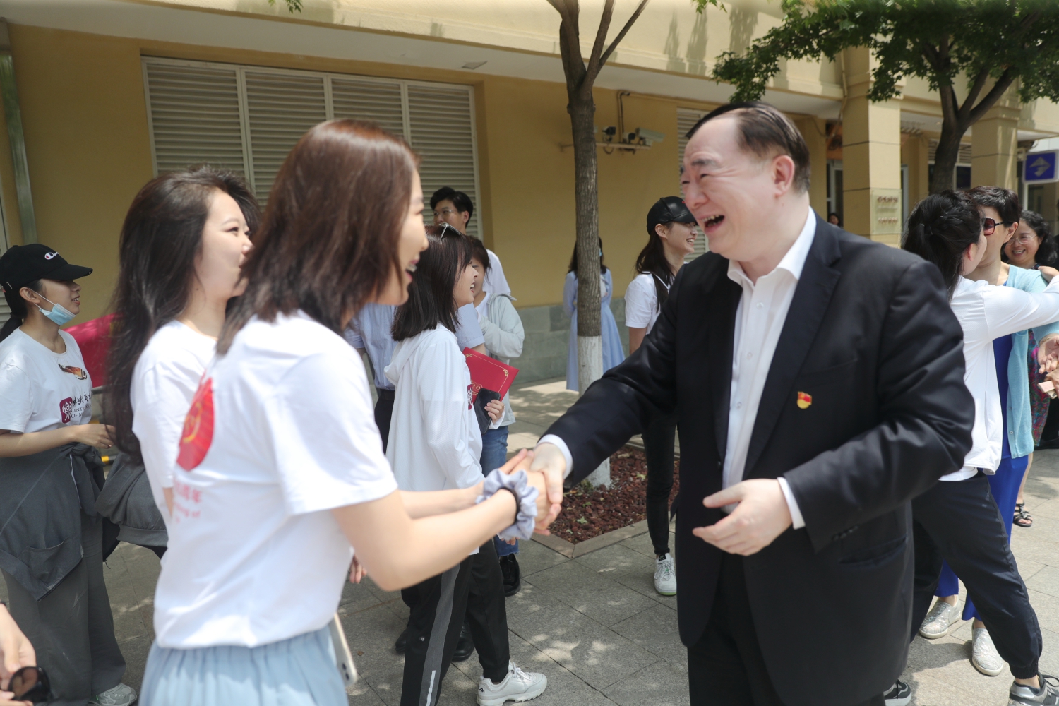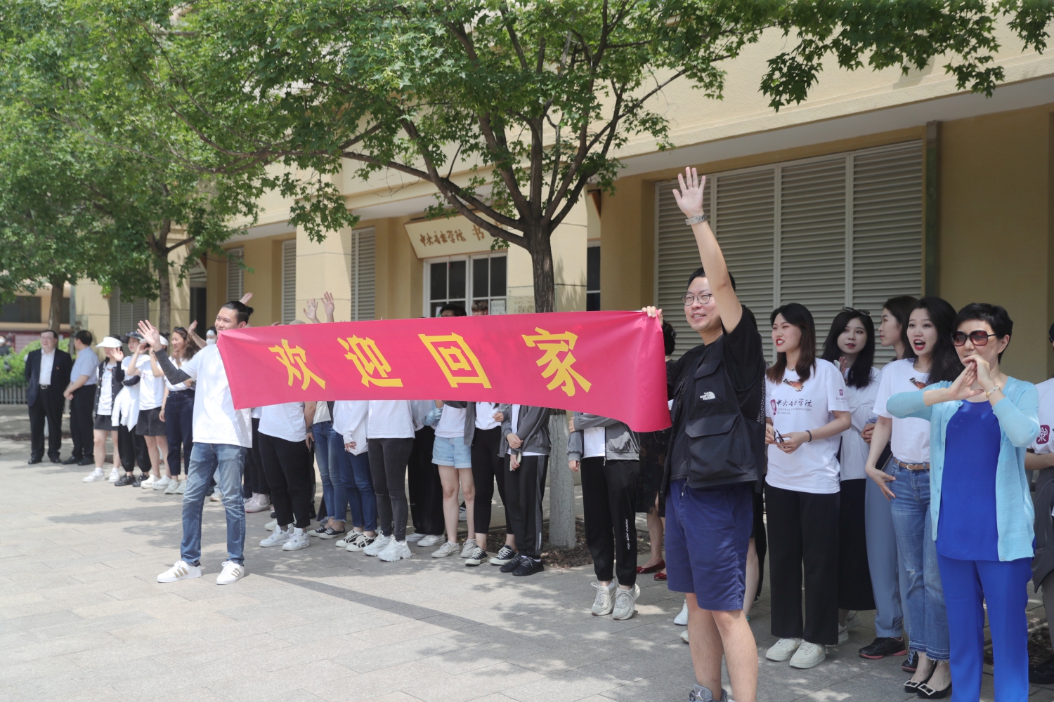 学校领导热情迎接圆满完成各项任务、载誉归来的师生,与他们亲切握手,表示问候。