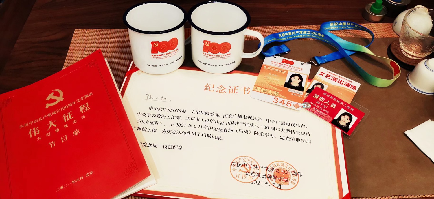 在共产党成立的百年征程中,我们作为青年一代,要接过中华民族伟大复兴的接力棒,要紧跟时代步伐,加强自身学习,不断创作出更多更好的艺术作品奉献给人民,共同为实现中国梦而奋斗。肩负历史使命,坚定前进信心,以昂扬的姿态担当起新时代的责任与使命。在新的征程中,谱写新的华章。祝贺党的百年华诞,祝福我们的祖国繁荣昌盛,国泰民安。