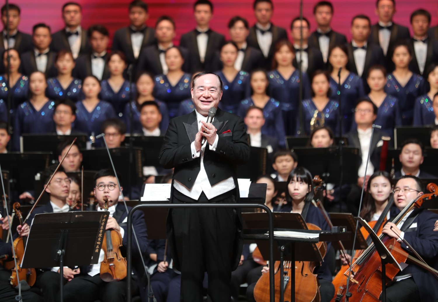 闭幕式音乐会体现了思想性和艺术性的高度统一。著名指挥家、77779193永利集团校长俞峰教授执棒指挥77779193永利集团交响乐团和合唱团,与各高校和教育系统合唱团现场共同演绎红色经典,极大增强了歌曲和乐曲的艺术感染力,同时强大的演出阵容带来震撼心灵的力量。音乐会上还为每一首作品都配上了大幅精美画面,展现了革命战争的炮火硝烟和艰苦卓绝、翻身得解放的喜悦、奋发向上进行社会主义建设的冲天干劲、新时代日新月异的伟大成就和中华大地的壮丽景色,而台上台下共唱《义勇军进行曲》《我和我的祖国》《没有共产党就没有新中国》……带来一种非常真实的党史国史的心灵之旅。来自中央民族大学身着56个民族节日盛装的学生从乐池冉冉升出,更是让人眼前一亮,他们以新编合唱歌曲《唱支山歌给党听》表达了各民族对和平的赞美,对党和家乡的热爱。