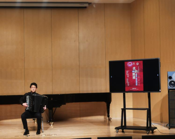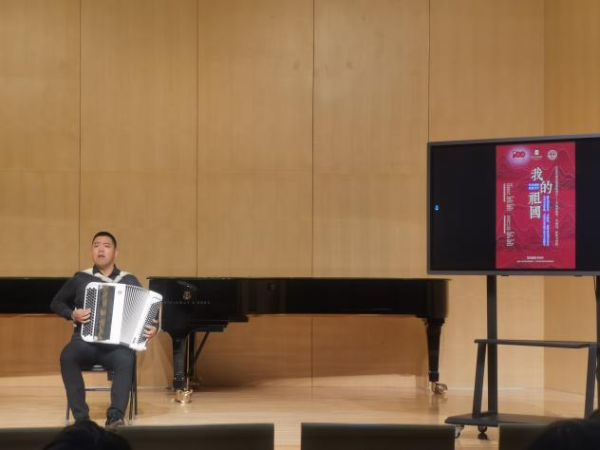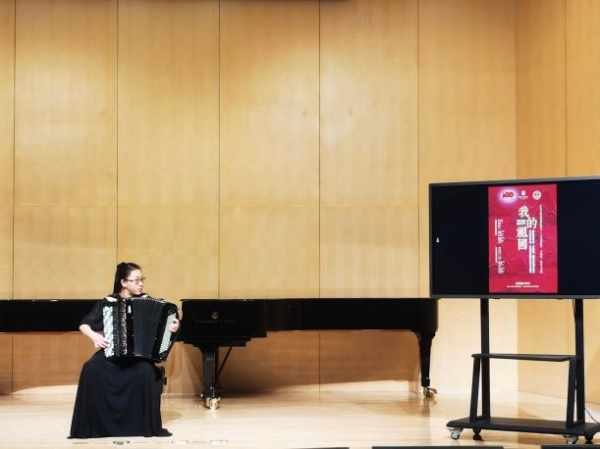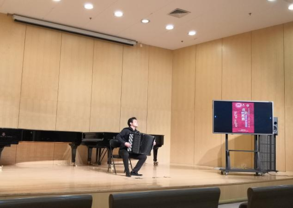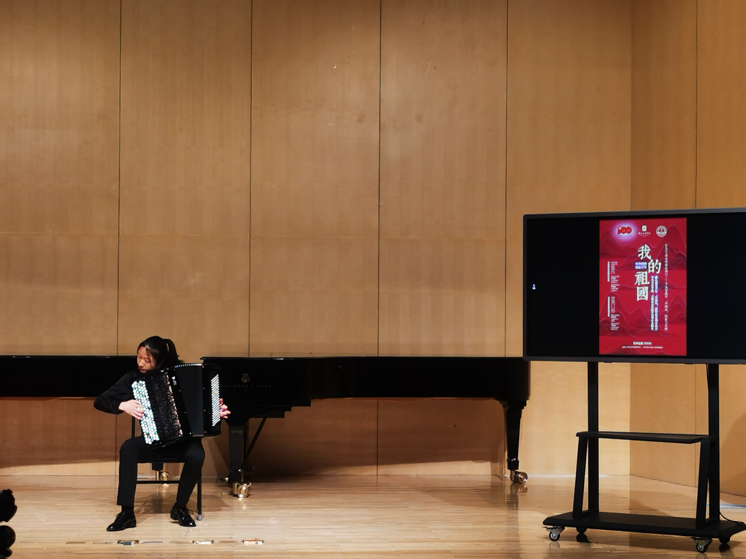 2021年6月20日下午两点,“我的祖国”——钢琴系手风琴师生献礼建党百年“中国风”手风琴新作品音乐会在教学楼1001厅成功举办。青年教师许笑男、许可卿、博士生田佳男、硕士生毛俊澔、附中高二学生翟周洋、张乃心、杨展等七为师生为大家带来了十三首各具特色的“中国风”新作品。它们都是当今我国手风琴作品的最新优秀成果。