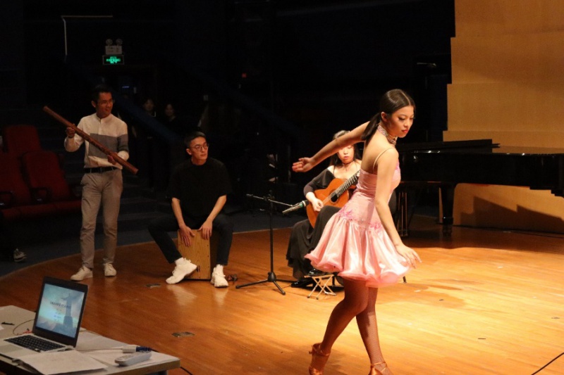 本场演出作为一场讲座音乐会,最大的亮点便是“讲演结合”。不同于普通音乐会中单纯的审美聆听,每一首曲目演奏前后,主讲人的讲解使观众能够更好地理解音乐背后深层次的文化内涵;其次,本场音乐会的互动性极强,如主讲人与演奏家的现场交流、邀请观众参与演奏、一起舞蹈。这种带动在场观众实践交流的方式,相比于只在台下“正襟危坐”,更能够将观众的注意力集中于舞台之上,拉近演奏家与观众的距离,有了“参与感”才更利于观众去理解异文化音乐。音乐会在向观众群体完美展示拉美音乐魅力、传播拉美音乐文化的同时,也让我们看到了不同国家、地区及民族音乐文化中的互文性,属于不同文化语境的音乐家之间的相互交流与学习,使音乐语言和文化内涵相互碰撞、交融,建构出具有多元文化属性的音乐,丰富了世界音乐文化资源。这不仅是当下音乐文化的交流,更是对未来世界音乐文化发展的展望。