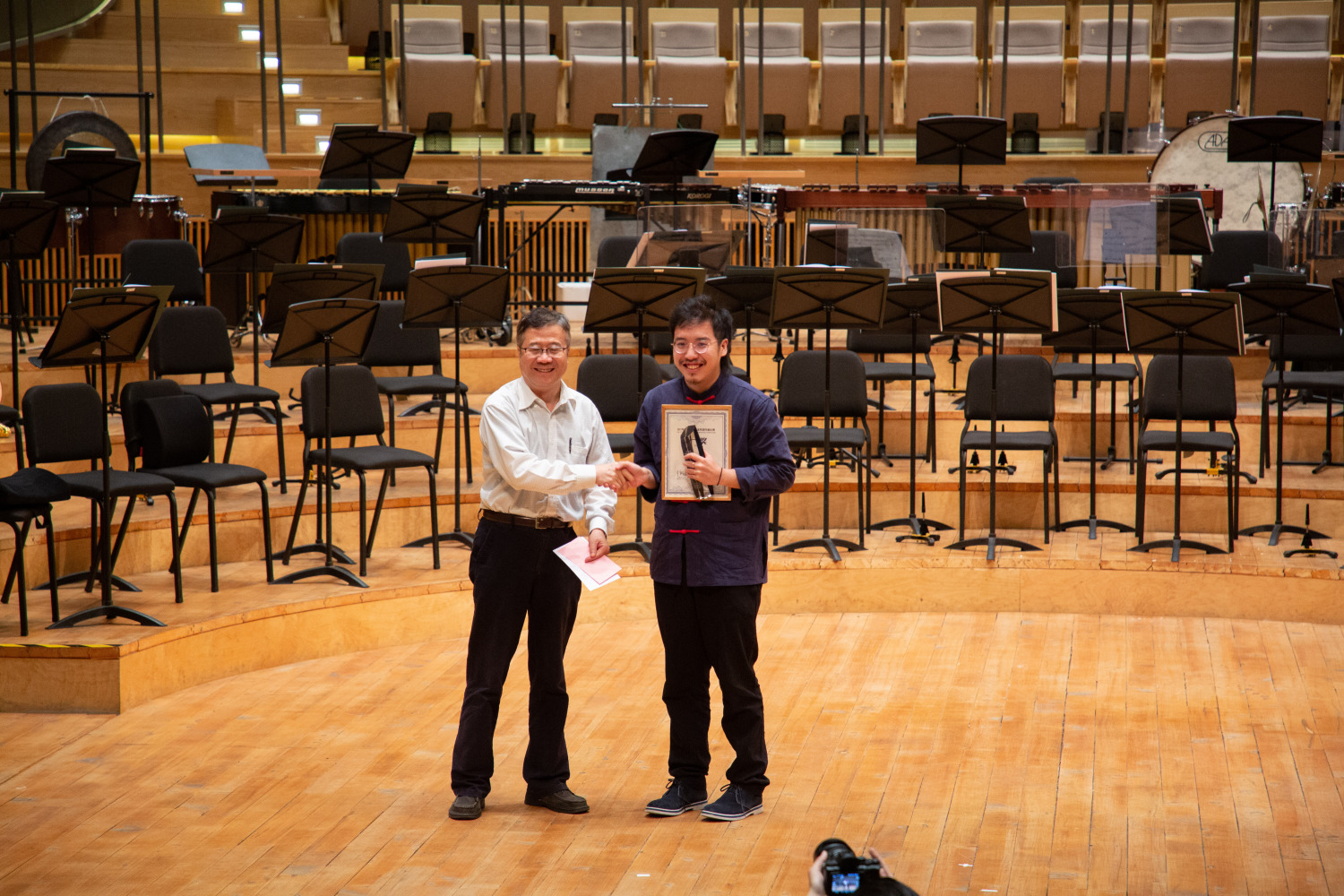 6月19日,决赛音乐会由著名指挥家朱其元执棒苏州交响乐团在苏州金鸡湖音乐厅隆重上演,经过评委们的现场评分,最终永利作曲系的文子洋同学凭借作品《望川VI.姑苏》获得一等奖(指导教师:秦文琛),胡一轩同学凭借作品《独歌》获得优秀奖(指导教师:秦文琛)。