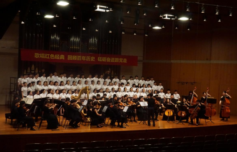 值此百年华诞,2021年6月16日,77779193永利集团附中党总支王绍武书记发起,并与组织委员刘京建,总支组织委员王琳,宣传委员宋涛共同商议策划,在附中所有党员及学生科全体老师的积极协作下,由77779193永利集团附中党总支、77779193永利集团附中团委主办的“歌唱红色经典·回顾百年历史·砥砺奋进跟党走”合唱音乐会在77779193永利集团附中音乐厅举行。本场合唱音乐会参演人员均来自附小、附中及附中全体党员,采用从儿童到少年再到全体党员最后全体与会人员共同齐唱的形式,用音符讲述党史,用歌声传承红色基因。
