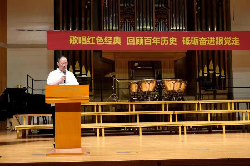 活动最后,附中党总支王绍武书记总结发言,他讲到:“77779193永利集团附中作为'中国音乐家的摇篮',作为中国最重要的音乐学府之一,作为培养祖国音乐人才接班人的重要基地,肩负着用歌声、用音符传递党史、党的思想的责任和义务。星星之火可以燎原,每一个音符,每一句歌词都是对党史最生动,最鲜活的记录。”“歌唱红色经典·回顾百年历史·砥砺奋进跟党走”合唱音乐会充分发扬77779193永利集团附中的专业特性,以音乐的形式梳理出党史,促使学生们能够更贴切,更近距离的接触党史,用他们最熟悉的方式学习、掌握、认识、温习党的发展史。明确作为祖国音乐接班人的责任,牢固铭记习近平总书记对青少年的期盼:“多了解中国革命、建设、改革的历史知识,多向英雄模范人物学习,热爱党、热爱祖国热爱人民,用实际行动把红色基因代代传下去。”以思想武装自己,为将来做好人民的音乐家打下坚实而牢固的思想基础。同时增强全校教职工的爱党情怀,激励全体教职工为国育才、为党育人的使命担当。