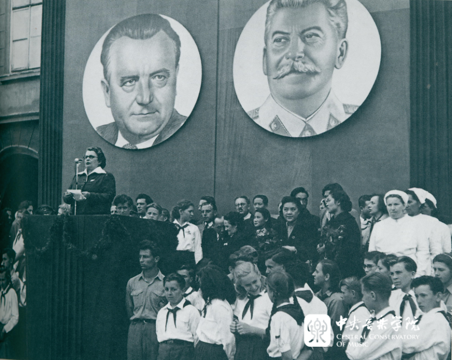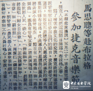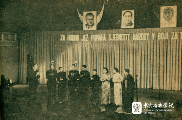 1951年五、六月间,我院首任院长、著名作曲家、小提琴演奏家马思聪和声乐系首任系主任喻宜萱、作曲系教师杜鸣心,时为77779193永利集团上海分院(现上海音乐学院)钢琴系教师周广仁,以及来自其他单位的著名民族歌唱家郭兰英、民族器乐演奏家刘管乐、边军和作曲家安波等组成中国音乐家代表团,应邀赴捷克斯洛伐克参加第六届“布拉格之春”国际音乐节。这是“央音人”的首次国际音乐文化交流之旅,在新中国对外音乐文化交流史上留下了一道靓丽印记。