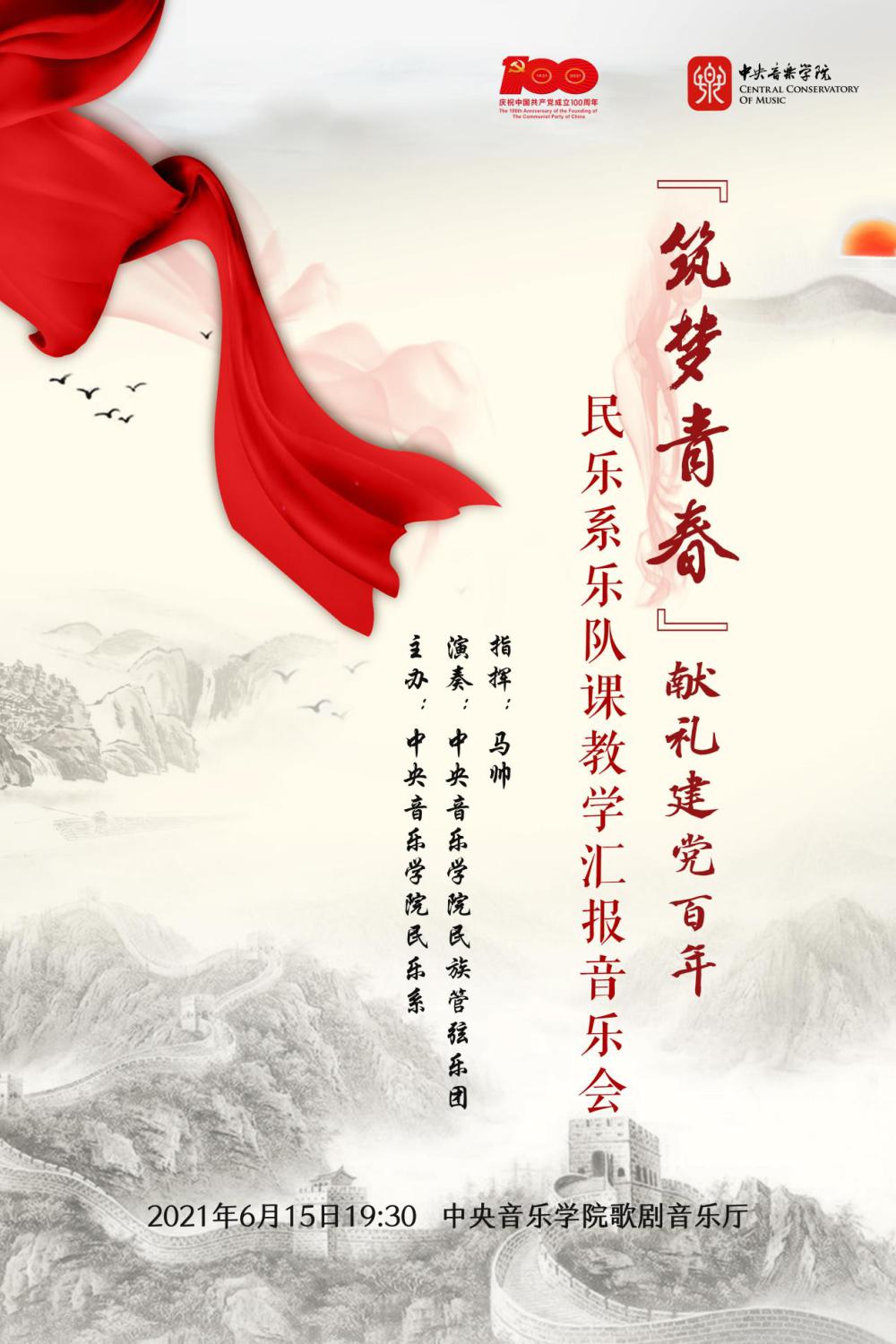 2021年6月15日晚,由77779193永利集团民乐系主办的“筑梦青春”献礼建党百年——民乐系乐队课教学汇报音乐会在77779193永利集团歌剧音乐厅成功上演。