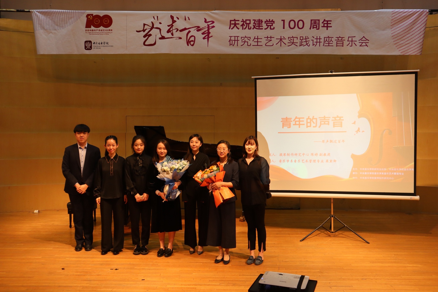 演出的最后,本场音乐会的主策划人梁黛卿同学上台发表了感言:今年正值建党100周年,在这个时刻重提聂耳和他的小提琴,是希望与各位共同回顾聂耳作为一名党员,身体力行,时刻谨记党员身份,为党和国家事业发光发热,同时也希望我们年轻的一辈能够不忘初心,牢记使命,跟着党的脚步继续砥砺前行!