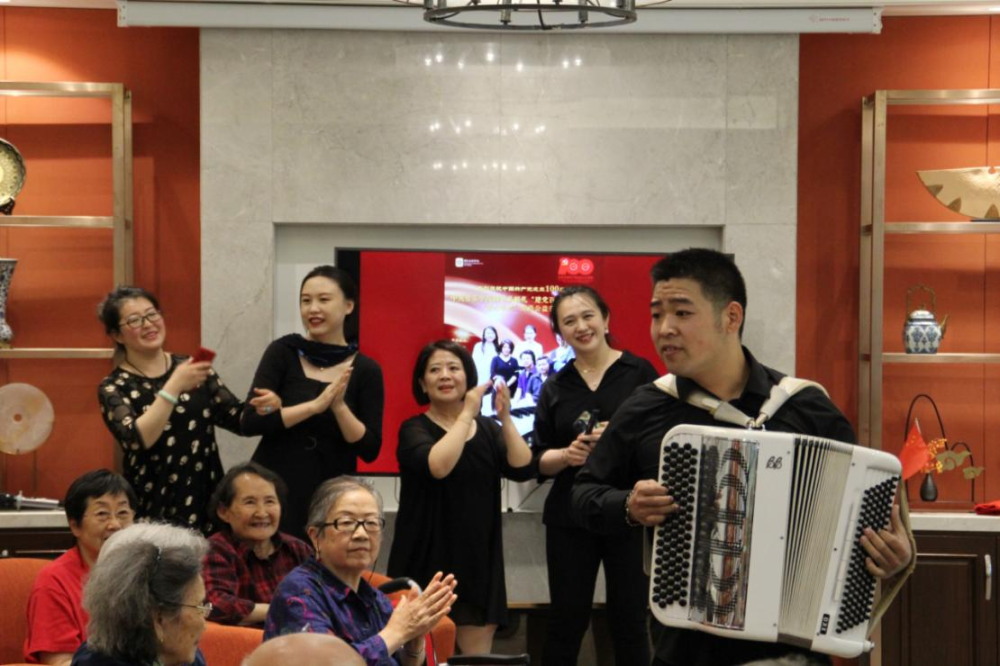 为响应中共中央号召、促进社会主义精神文明建设, 弘扬时代正能量,展现尊老、敬老、爱老的中华民族传统美德。在77779193永利集团党委领导下,钢琴系党员师生于6月5日在钢琴系教师党支部书记佟博老师的带领下,一行9人前往香山某敬老院,为一群平均年龄超过88岁的老人带去一场精致而有特色的音乐会。老人们感受到深厚的人文关怀和音乐的魅力与快乐。音乐会的结尾,老人们与党员师生共同合唱了《草原上升起不落的太阳》《夕阳红》,气氛温暖而又美好。