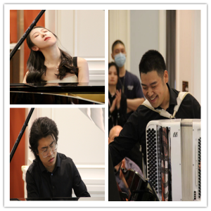 我与钢琴系党支部的几位老师和同学来到坐落在北京西郊的香山长者公寓,对居住在此的老人们进行探访,并举行了一场小型的音乐会。一路上风景十分宜人,公寓的环境也十分优美,这也增添了我们表演的兴致。到达之后进行了短暂的休息之后音乐会就开始了。音乐会曲目以大家耳熟能详的中国作品为主,比如马绍康老师演奏的《牧童短笛》,佟博老师演奏的《山丹丹开花红艳艳》,也包括林晔老师与童薇老师合作演奏的四手联弹《唱支山歌给党听》《我的祖国》等;同时涵盖了西方钢琴文献中的经典曲目,比如林晔老师演奏的肖邦《玛祖卡作品24》,方家同学演奏的拉赫玛尼诺夫《音乐瞬间》等。而在演出接近尾声时,许可卿老师即兴演奏了苏联歌曲串烧,燃起了在场各位老人们的苏联情结。几位老师又邀请观众一起和着琴声演唱了《草原上升起不落的太阳》《夕阳红》,使气氛达到高潮。在场的老人们十分赞赏这次演出活动,纷纷向我们表示祝贺,而我们能够用艺术的形式给老人们带来欢乐、勾起他们的美好回忆,也感到万分的开心。
