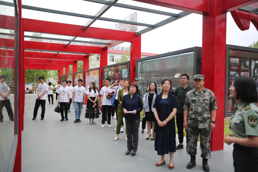 (永利师生在军史长廊参观,讲解员讲述军史)