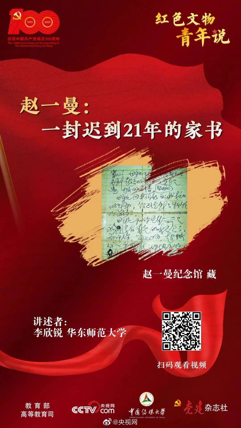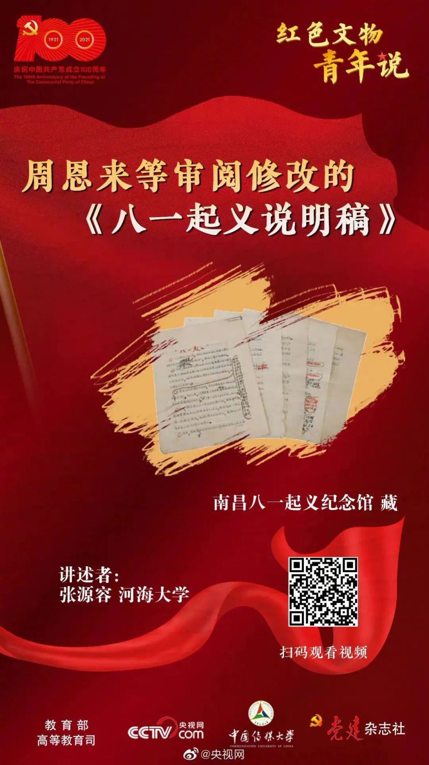 为庆祝中国共产党成立100周年,央视网与教育部高等教育司、中国传媒大学、党建杂志社联合全国百所高校、百名青年学子共同推出百集短视频《红色文物青年说》,接力讲述身边百件红色文物的故事,传承百年大党的红色基因,赓续共产党人的精神血脉。