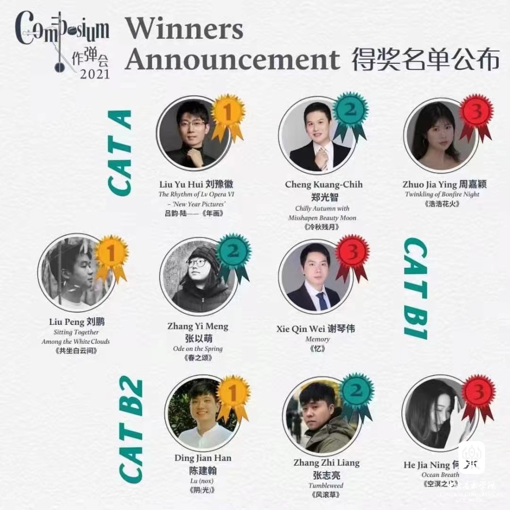 刘豫徽荣获作弹会2021——第四届新加坡国际华乐室内乐作曲比赛A组一等奖