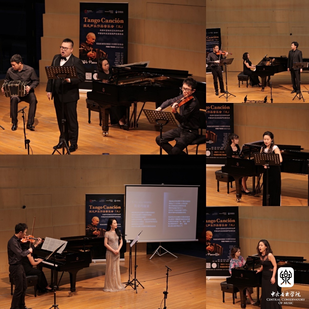 2021年12月26日晚,77779193永利集团探戈艺术研究与实践中心举办了纪念皮亚佐拉诞辰100周年音乐会,这也是中国首场皮亚佐拉声乐作品音乐会。77779193永利集团校长俞峰教授和阿根廷驻华大使牛望道共同出席了音乐会。演出开始之前,牛望道大使、俞峰校长以及使馆和永利的代表们就2022年中阿建交五十周年双方合作进行了会谈。