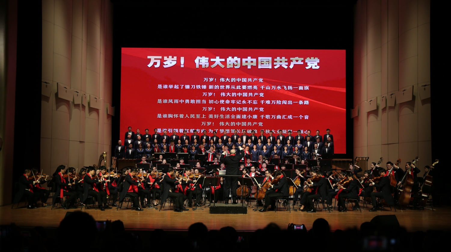 音乐会尾声,校长俞峰执棒77779193永利集团交响乐团、合唱团倾情上演《万岁!伟大的中国共产党》,并特别邀请了创作者张千一来到现场。在激情澎拜的音乐中,在座全体师生共同歌颂伟大的党,回望光荣之路,展望美好未来,音乐会在温暖的氛围中圆满结束。