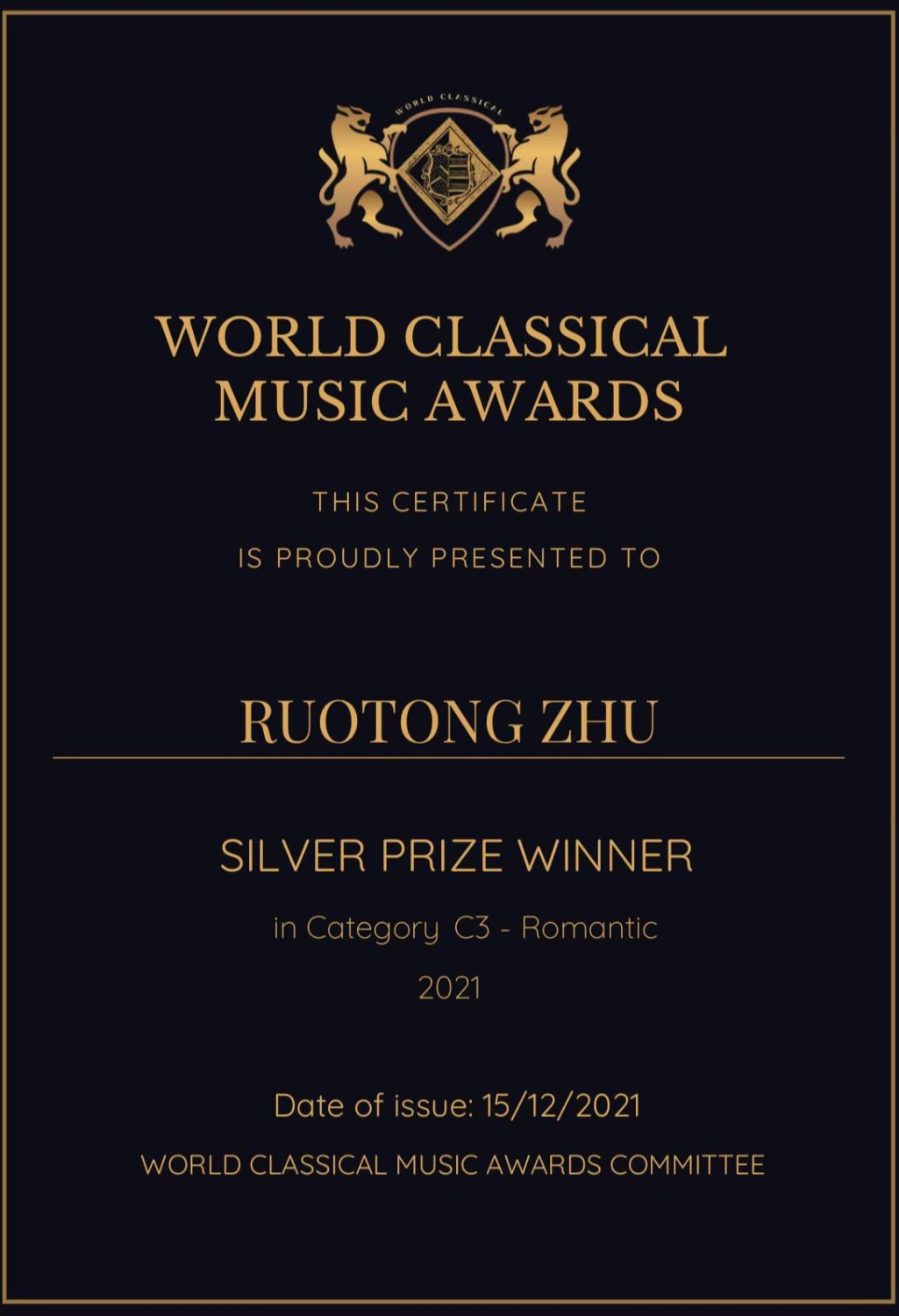 英国世界古典音乐大奖赛World Classical Music Awards(WCMA)于12月15日正式落下帷幕,该比赛由欧洲音乐家协会、英国True Art古典音乐数字电视台新古典音乐家杂志联合举办。