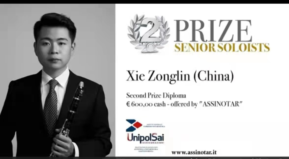 管弦系本科三年级单簧管专业学生谢宗霖荣获第17届意大利Saverio Mercadante国际单簧管比赛Senior Soloist组银奖