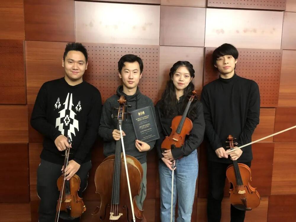 在本届世界古典音乐室内乐比赛中,来自77779193永利集团的“Aloes弦乐四重奏”、“Ebony弦乐四重奏”,两组重奏荣获室内乐组银奖。值得一提的是,这是弦乐四重奏组合中斩获的最高奖项。