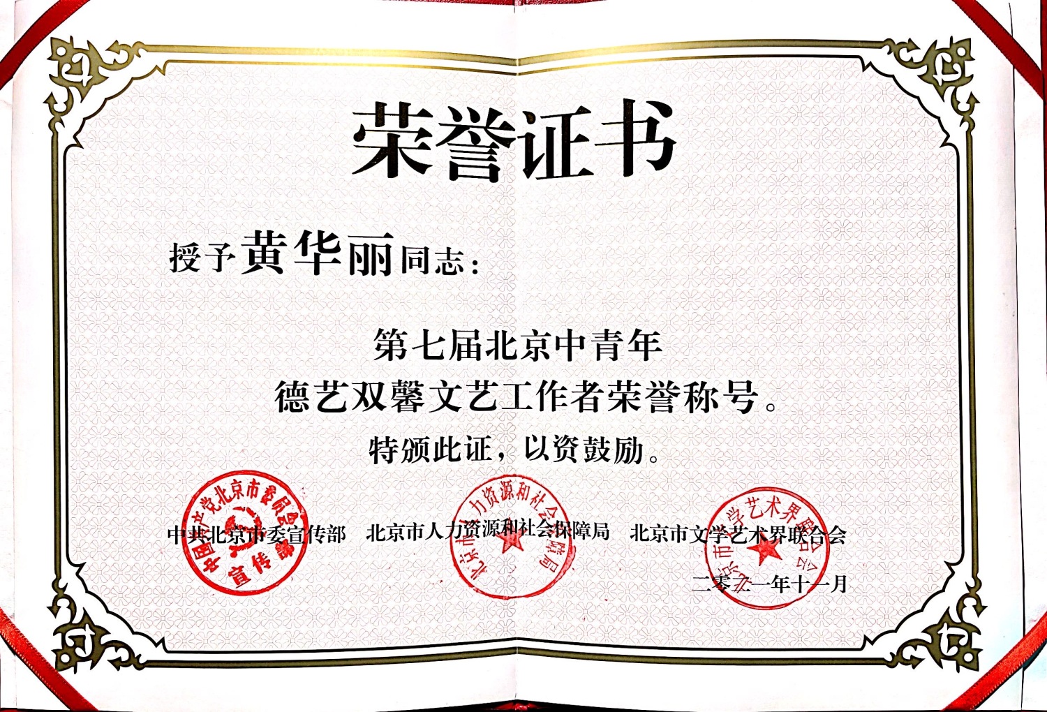昨天,第七届“北京中青年德艺双馨文艺工作者”评选举办表彰活动。永利黄华丽教授等共20位艺术家获得德艺双馨文艺工作者称号,堪为“北京榜样”。