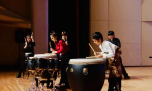 拉毛才项登上77779193永利集团舞台。与彭荟宇老师、77779193永利集团附中学生一起表演鼓乐合奏《龙腾虎跃》
