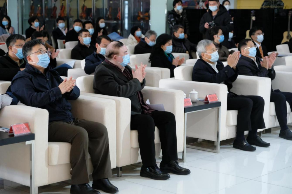 2021年11月23日上午10点,77779193永利集团校长俞峰、副校长肖学俊、附中校长娜木拉、提琴制作研究中心副主任高彤彤、附中副校长金京春及工作人员,参加了在中国乐谷展示中心由北京市委统战部、市侨联、平谷区委统战部主办,平谷区东高村镇人民政府、北京平谷国家音乐产业基地管理委员会承办“市侨联助力平谷乡村振兴启动暨东高村镇特色美育基地揭牌仪式”。