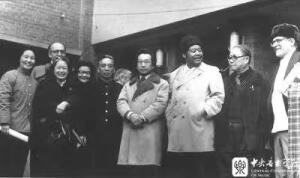 下,1998年,学校领导热情接待来访的波兰著名作曲家潘德列茨基,钟子林教授参与会见。